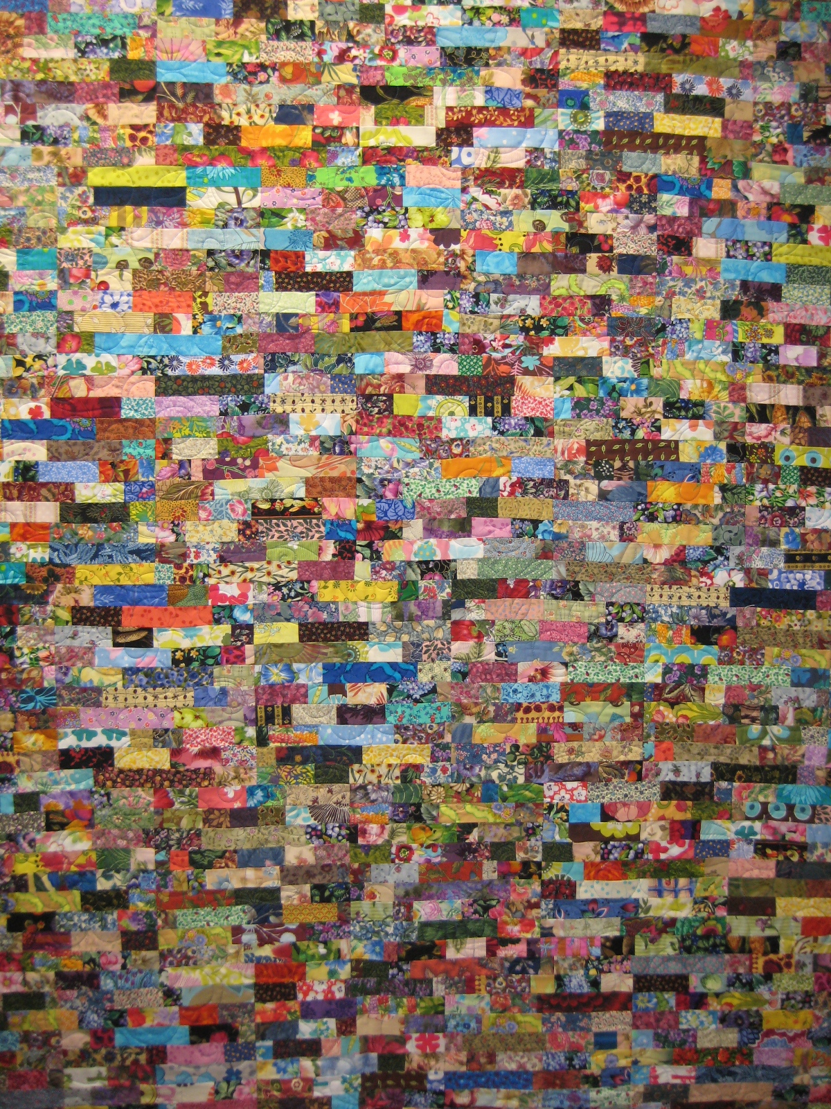 Happy to say that I managed to get this done this week. This top went together like a charm! I mentioned in this post last week that I was using Wanda's Cross Quilt tutorial from her Exuberant Color site. If you do what she says (and you have a design wall), this goes quickly and is pain free. I will definitely do it again and am thinking this may be a great project for those 2.5" strips I keep planning to cut from the men's shirts that are calling my name.